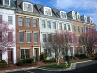 Some other unique characteristics of Old Town Village are the number of landscaped courtyards throughout the community and all of the sidewalks are brick. The courtyards feature plush green lawns with brick sidewalks which front several rows of townhomes. There are also a number of wooden benches placed throughout. Also unique are the tall, black column lamposts with glazed glass similar to ones you would find in Old Town or Georgetown. All of the townhome and courtyard home parking garages are in the rear connected to the main streets by alleys. The rear of each home faces the rear of another creating a very communal and neighborly environment. A common sight is to see neighbors chatting with one another on their decks. Another common sight walking down the townhome alleys in the warm weather months are the lovely flower boxes hanging on top of and over many of the balcony deck rails.